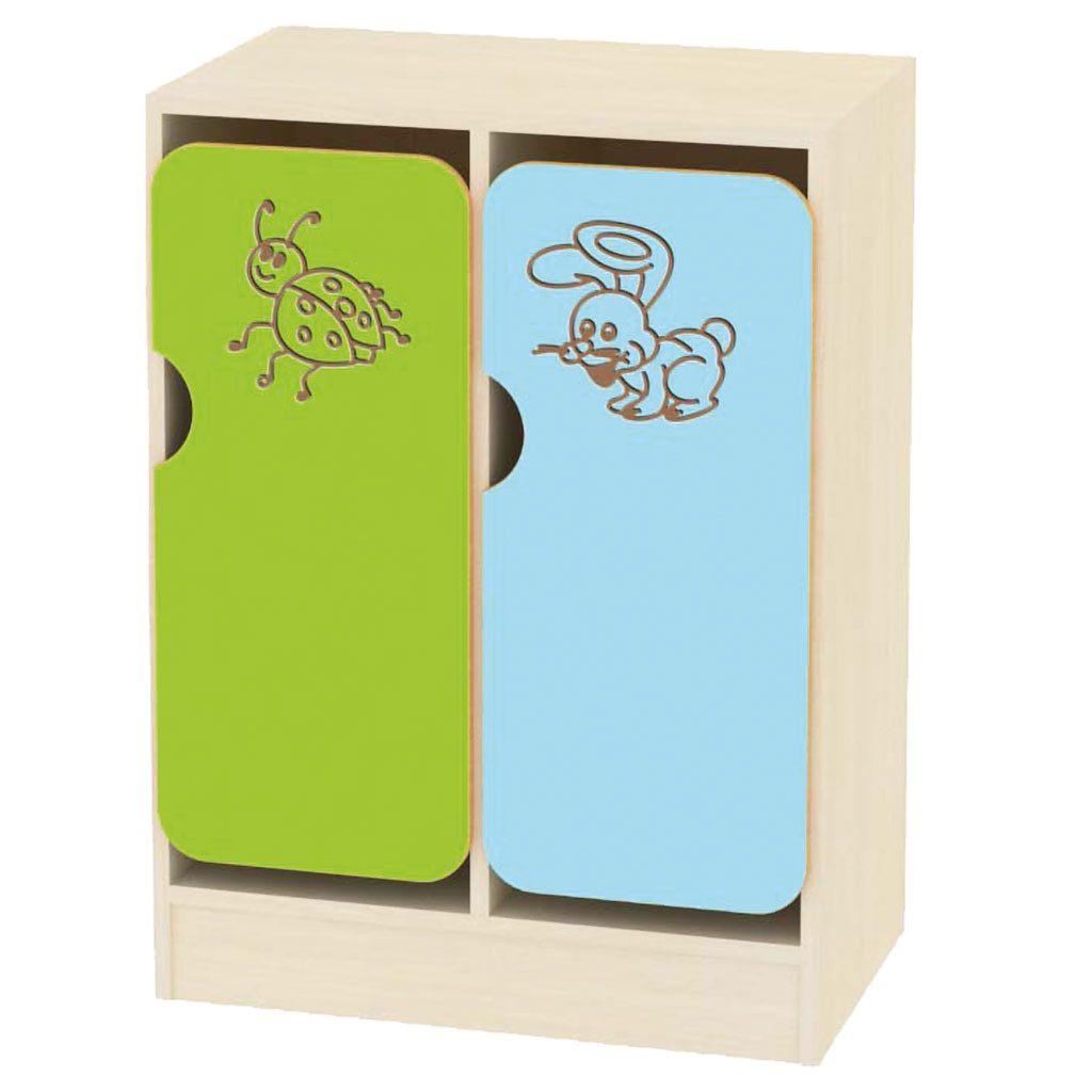 Šatne sú vyrobené z 18 mm DTD dosky, ktorá má zaoblenú ABS bezpečnostnú hranu s hrúbkou 2 mm. Dvierka sú vyrobené zo 12 mm MDF dosky, majú zaoblenú hranu. Na dvierka sa dajú frézovať vzory, na výber máte 92 motívov. Každá priehradka má dva dvojité háčiky, ktoré sú umiestnené oproti sebe. Na požiadanie, za príplatok 3 € na jednu bunku, môžeme vyrobiť šatňu aj s tyčou na ramienko. V tom prípade za kód pripíšte písmeno T. Na výber máte korpus javor alebo buk