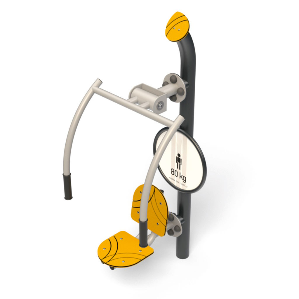 Význam cvičenia: Fitnes zariadenie určené na spevnenie svalov v oblasti hrudníka, ramien a rúk dieťaťa. Návod na používanie: Dieťa si sadne na sedlo, uchopí obe rukoväte pred sebou a tlačí ich dopredu, až kým nemá takmer úplne vystreté ruky. Dieťa vydychuje pri tlačení, nádych robí pri návrate do počiatočnej polohy. Pre správnosť vykonávania cvičenia je dôležité dodržiavať pravidlo výdychu a nádychu. Bezpečnostná zóna: 379 x 358 cm. Prevádzkové pokyny: Fitness zariadenia sú určené pre deti do výšky 140 cm a váhy 80 kg. Zariadenie je určené na rekreačné cvičenie pre jedno dieťa, ktoré môže cvičiť len pod dohľadom dospelej osoby. Pri používaní tohto zariadenia musia byť dohliadajúce osoby oboznámene s prevádzkovým poriadkom a musia ho dodržiavať. Osoba, ktorá dohliada na dieťa na cvičebnom zariadení, si musí byť vedomá zdravotného stavu dieťaťa a jeho fyzických možností. Druh dopadovej plochy podľa EN 16630: tráva, ornica, riečny štrk, gumená podlaha. PLÁN KONTROL: Vizuálna kontrola - 1 - krát týždenne vykonaná prevádzkovateľom Prevádzková kontrola – 4 - krát ročne vykonaná prevádzkovateľom Ročná hlavná kontrola – 1- krát ročne vykonaná oprávnenou osobou