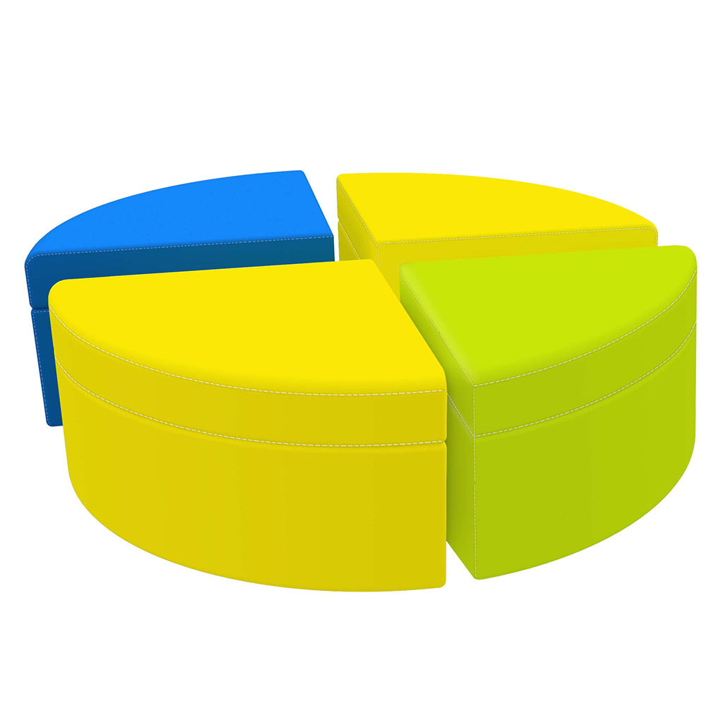 Sedačka je vyrobená z odolného molitanu T35 a potiahnuté kvalitnou koženkou. Modulové sedenie sa skladá z 4 x štvrťkruh 45 x 45 x 31 cm, výška sedu: 31 cm.