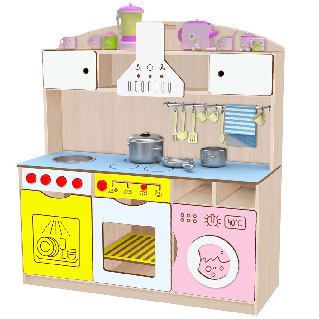 Detská kuchynka je vyrobená z 18 mm DTD dosky a má zaoblenú bezpečnostnú ABS hranu s hrúbkou 2 mm. Na výber máte korpus javor alebo buk. Dvierka sú vyrobené zo 12 mm MDF dosky. Na dvierka sa dajú frézovať vzory. Kombinácia modulov - rúra, mikrovlnka, umývačka riadu, digestor. Do dvierok rúry je vložený rosť z 12 mm MDF. V cene kuchynky je aj nerezová miska a tyč na vešanie kuchynského riadu.