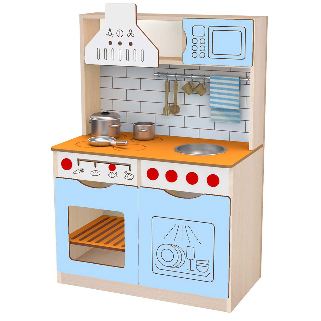 Detská kuchynka je vyrobená z 18 mm DTD dosky a má zaoblenú bezpečnostnú ABS hranu s hrúbkou 2 mm. Na výber máte korpus javor alebo buk. Dvierka sú vyrobené zo 12 mm MDF dosky. Na dvierka sa dajú frézovať vzory. Kombinácia modulov - rúra, mikrovlnka, umývačka riadu, digestor. Do dvierok rúry je vložený rosť z 12 mm MDF. V cene kuchynky je aj nerezová miska a tyč na vešanie kuchynského riadu.