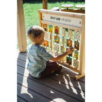 Tri veľké kontajnery s 36 predmetmi na recyklovanie, ktoré je potrebné správne zatriediť medzi papier, sklo alebo plasty. Všetky predmety s lepivým povrchom. Rozmery: kartičky: 7 x 12 cm, kontajner: 46,4 x 65,5 cm. Vek: 4+.