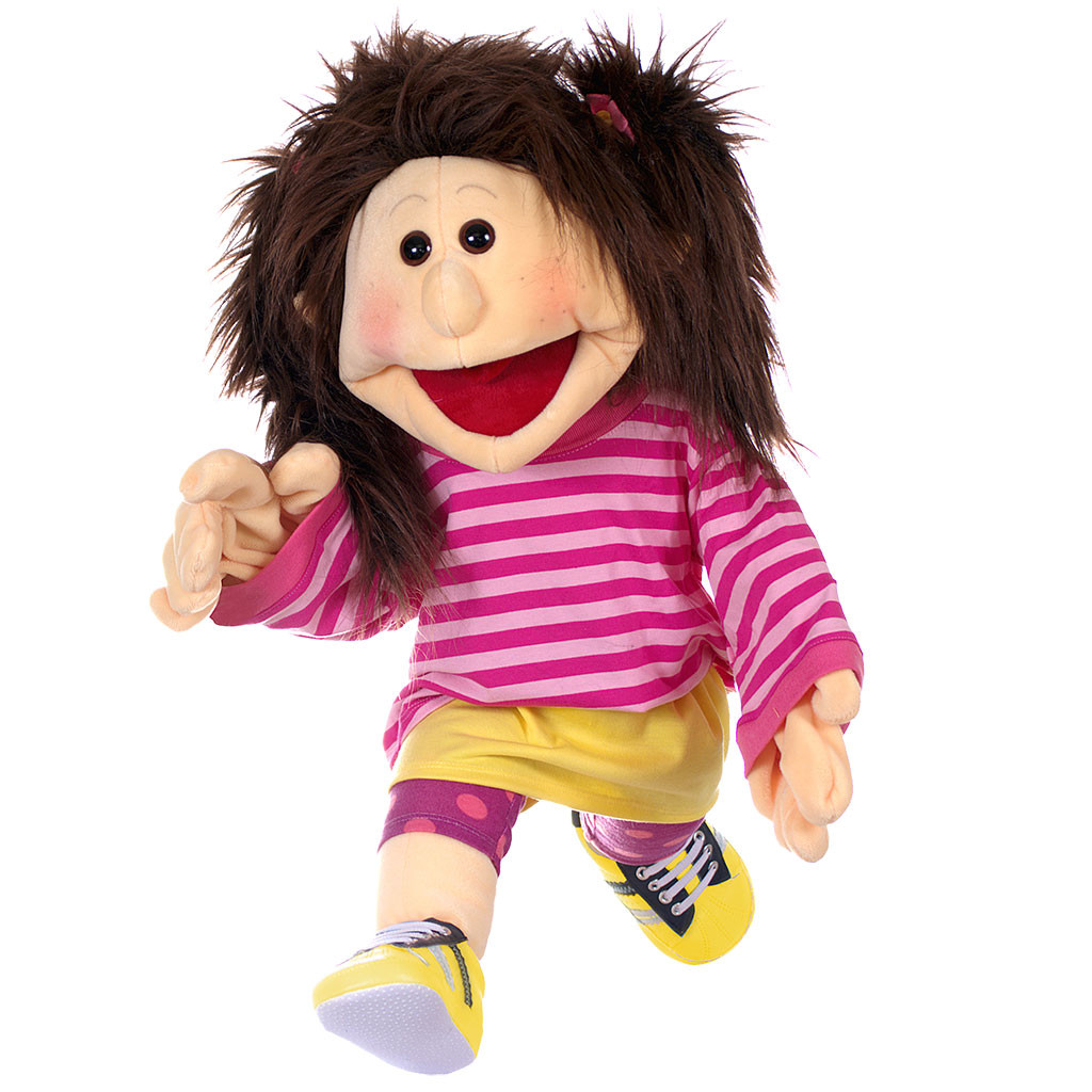 Roztomilé a hebké maňušky ožijú na detských rúčkach, stačí len dať fantázii voľnosť a hneď sú na svete veselé príbehy. Vhodná pomôcka na dramatizáciu rozprávok, pri ktorých si dieťa cvičí koordináciu oko - ruka a taktiež rozvíja slovnú zásobu a reč. Maňuška je vyrobená z mäkkého, kvalitného materiálu a hýbe ústami, jazykom a rukami. Môžete sa hrať aj tak, že obe ruky zasuniete do rúk maňušky a tak môžete mávať, zberať veci, tlieskať alebo objímať. Hračka sa dá prať v rukách, sušiť iba na vzduchu a nežehliť. Výška 65 cm. Materiál: textil. Vek: 3+.