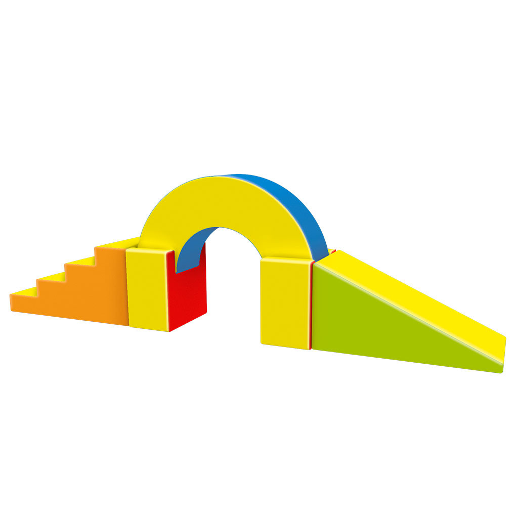 1 x schody 100 x 50 x 50 cm, 1 x rampa 100 x 50 x 50 cm, 2 x U mostík 50 x 30 x 50 cm, 1x oblúk 120 x 30 x 60 cm