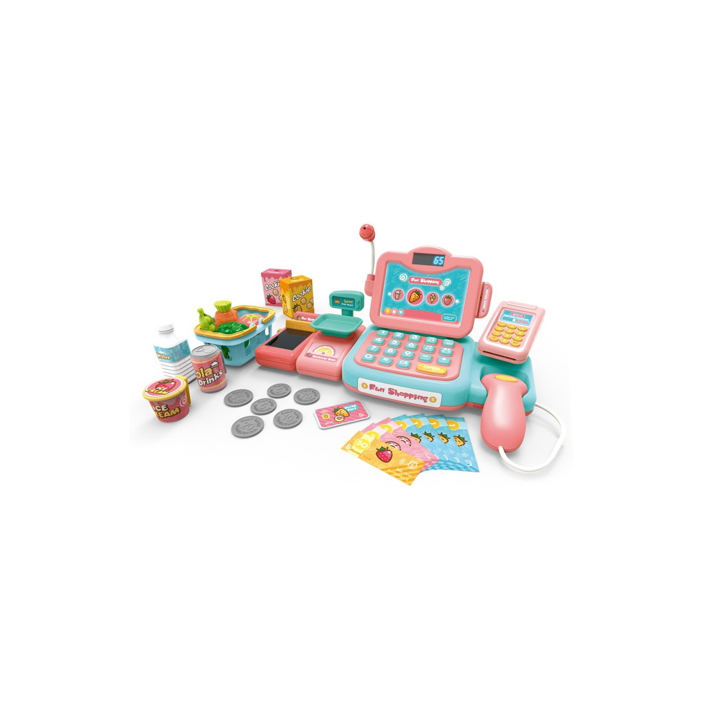 Pokladňa s mnohými doplnkami rozvíja detskú predstavivosť pri hre na profesie. Deti môžu vážiť ovocie a zeleninu a následne ju označiť pomocou klávesnice počítača. Pomocou čítačky môžu naskenovať balíček sušienok alebo fľašu vody. Potom budú môcť platiť peniazmi alebo platobnou kartou. Pokladňa vydáva zvuky a je vybavená váhou, mikrofónom a platobným terminálom. Sada obsahuje nákupný košík, zeleninu, ovocie, balíček sušienok, platobnú kartu, umelé bankovky a mince, telefón, fľašu vody, kolu a zmrzlinu. Rozmery balenia: 48 × 20,5 × 18,5 cm. Materiál: plast. Vek: 3+.