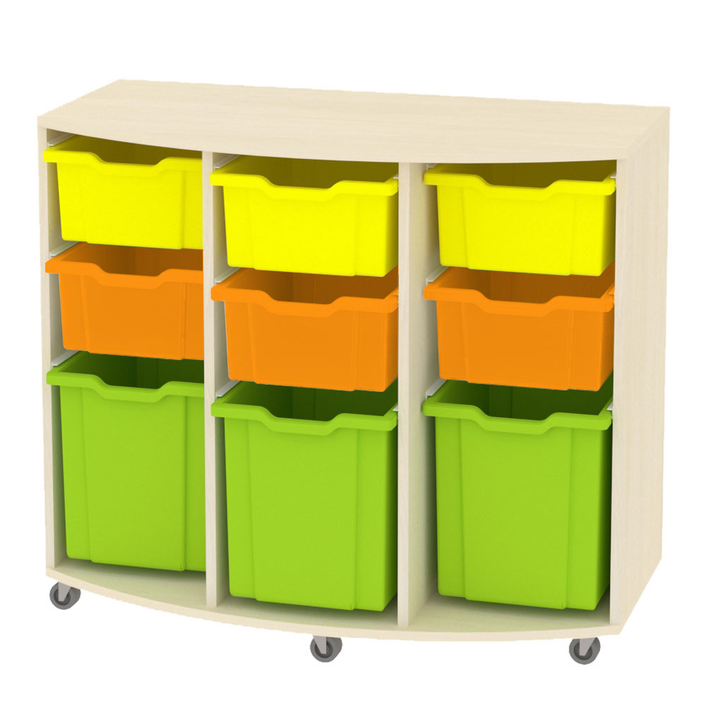 Skrinka je vyrobená z 18 mm DTD dosky, ktorá má zaoblenú ABS bezpečnostnú hranu o hrúbke 2 mm. Na výber máte korpus javor alebo buk. Ceny skriniek sú bez plastových kontajnerov a vodiacich líšt. Kontajnery a lišty sa objednávajú samostatne.
