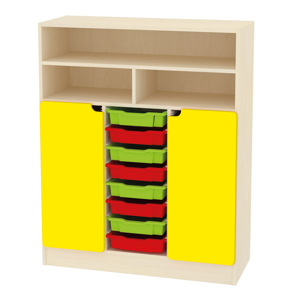 Skrinka je vyrobená z 18 mm DTD dosky, ktorá má zaoblenú ABS bezpečnostnú hranu o hrúbke 2 mm. Na výber máte korpus javor alebo buk.  Ceny skriniek sú bez plastových kontajnerov a vodiacich líšt. Kontajnery a lišty sa objednávajú samostatne.