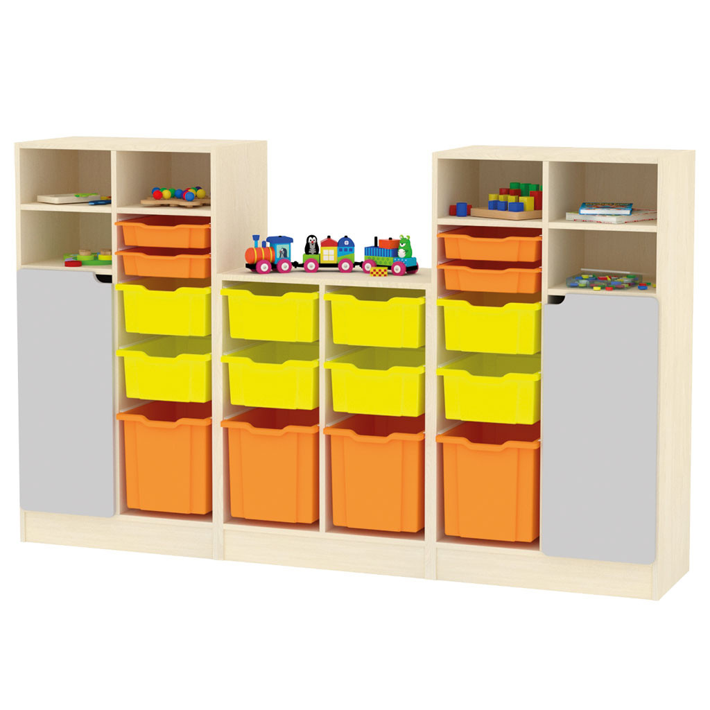 3D Zostavy sú vyrobené z 18 mm DTD dosky, ktorá má zaoblenú ABS bezpečnostnú hranu s hrúbkou 2 mm. Dvierka sú vyrobené zo 16 mm MDF dosky, sú potiahnuté farebnou fóliou a tiež majú zaoblenú hranu. Vybrať si môžete korpus javor alebo buk. Máte možnosť vybrať si zostavu podľa nášho návrhu, (obrázok), alebo si vytvoriť vlastnú zostavu kombináciou 3D skriniek z našej ponuky, farebností a motívov podľa vašich potrieb. Na výber máte 9 farieb , 92 samostatne frézovaných motívov, 41 príbehov a nespočetné množstvo kombinácií. Cena je bez matracov v domčekoch(možnosť výberu farby), kontajnerov Gratnells a vodiacích líšt - možnosť výberu farby.