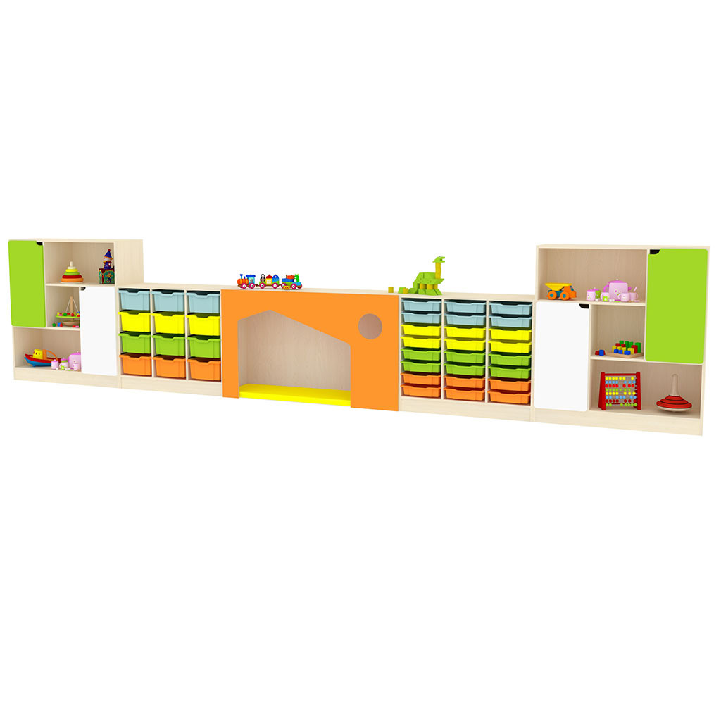 3D Zostavy sú vyrobené z 18 mm DTD dosky, ktorá má zaoblenú ABS bezpečnostnú hranu s hrúbkou 2 mm. Dvierka sú vyrobené zo 16 mm MDF dosky, sú potiahnuté farebnou fóliou a tiež majú zaoblenú hranu. Vybrať si môžete korpus javor alebo buk. Máte možnosť vybrať si zostavu podľa nášho návrhu, (obrázok), alebo si vytvoriť vlastnú zostavu kombináciou 3D skriniek z našej ponuky, farebností a motívov podľa vašich potrieb. Na výber máte 9 farieb , 92 samostatne frézovaných motívov,  41 príbehov a nespočetné množstvo kombinácií. Cena je bez matracov v domčekoch(možnosť výberu farby), kontajnerov Gratnells a vodiacích líšt - možnosť výberu farby.