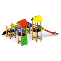Bezpečnostná zóna: 920 x 850 cm. Prevedenie METAL spĺňa tie najnáročnejšie požiadavky na trvácnosť a údržbu. Všetky nosné časti sú vyrobené z oceľového štvorcového profilu, rozmer 6 x 6 cm. Oceľové profily nie sú vložené priamo do zeme, ale do vrstvy betónu. Všetky kovové prvky sú galvanizované a ošetrené práškovou farbou, je to ideálna ochrana pred nepriaznivými poveternostnými podmienkami a koróziou. Voľne viditeľné skrutky sú ochránené farebnými plastovými záslepkami za účelom bezpečnosti a estetiky zároveň. Striešky, podlahy a bezpečnostné zábrany sú vyrobené z dosák HDPE o hrúbke 8 - 20 mm. Veľkou výhodou tohto materiálu je najmä farebná stálosť. Materiál neabsorbuje vodu, nevydúva a neláme sa, pretože je to trvácny plast. HDPE je odolný voči atmosférickým vplyvom a UV žiareniu. Zostava spĺňa normu EN1176.