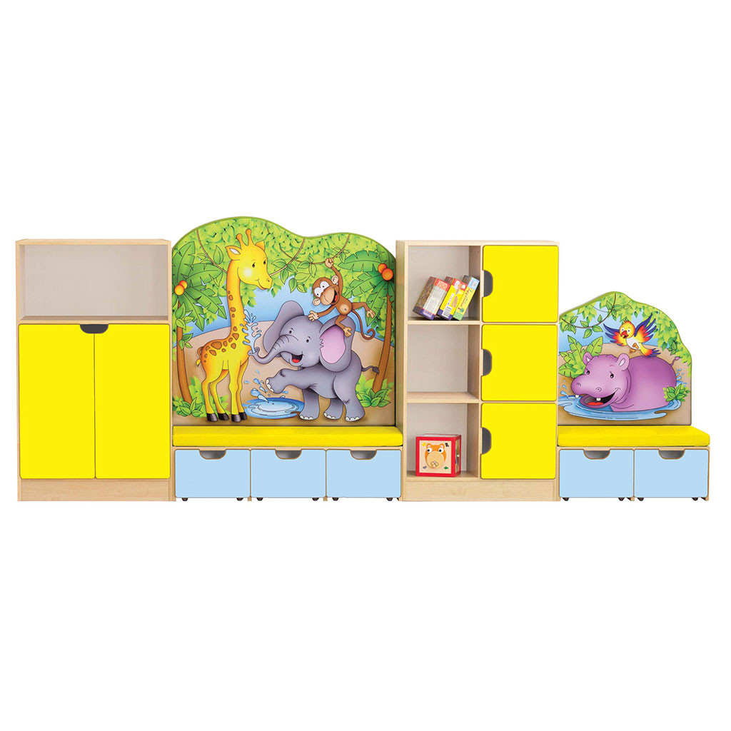 Nábytkové zostavy Molitánik sú vyrobené z 18 mm DTD dosky, ktorá má zaoblenú ABS bezpečnostnú hranu s hrúbkou 2 mm. Dvierka sú vyrobené zo 12 mm laminovanej MDF dosky, majú zaoblenú hranu. Vybrať si môžete korpus javor alebo buk. Máte možnosť vybrať si zostavu podľa nášho návrhu, (obrázok), alebo si vytvoriť vlastnú zostavu kombináciou skriniek podľa vašich potrieb. V cene zostavy sú aj dekoračné molitany a matrace na sedacích skrinkách. V ponuke máme 5 farieb matracov a rôzne dekoračné molitany, ktoré si tiež môžete skombinovať podľa vašich predstáv.