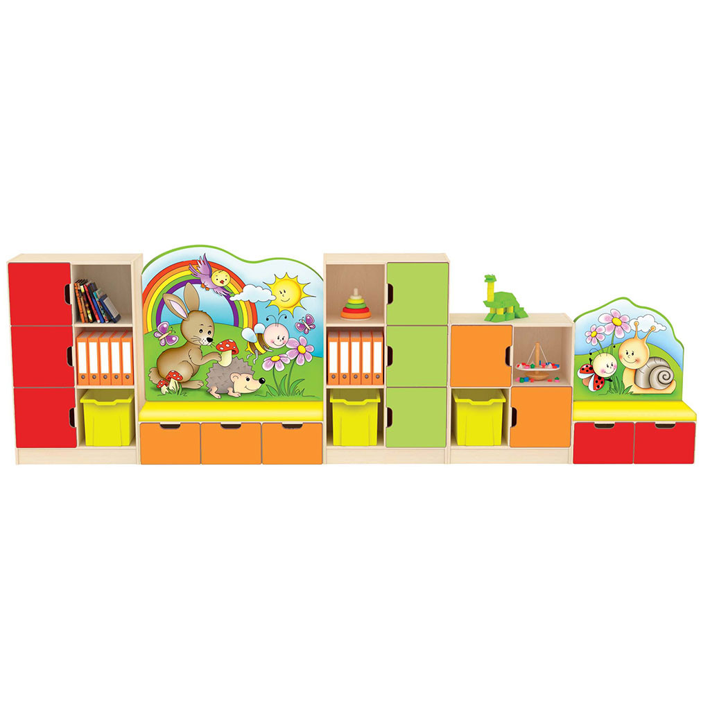 Nábytkové zostavy Molitánik sú vyrobené z 18 mm DTD dosky, ktorá má zaoblenú ABS bezpečnostnú hranu s hrúbkou 2 mm. Dvierka sú vyrobené zo 12 mm laminovanej MDF dosky, majú zaoblenú hranu. Vybrať si môžete korpus javor alebo buk. Máte možnosť vybrať si zostavu podľa nášho návrhu, (obrázok), alebo si vytvoriť vlastnú zostavu kombináciou skriniek podľa vašich potrieb. V cene zostavy sú aj dekoračné molitany a matrace na sedacích skrinkách. V ponuke máme 5 farieb matracov a rôzne dekoračné molitany, ktoré si tiež môžete skombinovať podľa vašich predstáv.